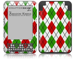 Argyle Red and Green - Decal Style Skin fits Amazon Kindle 3 Keyboard (with 6 inch display)