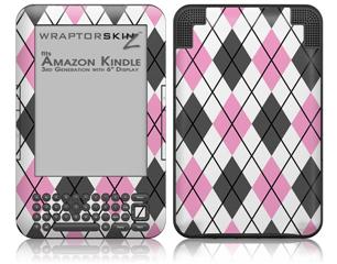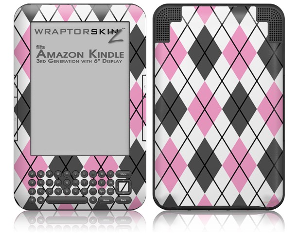 Argyle Pink and Gray - Decal Style Skin fits Amazon Kindle 3 Keyboard (with 6 inch display)