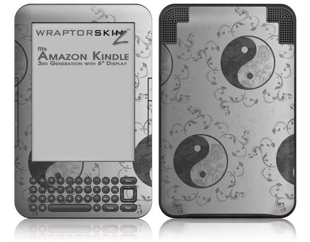 Feminine Yin Yang Gray - Decal Style Skin fits Amazon Kindle 3 Keyboard (with 6 inch display)