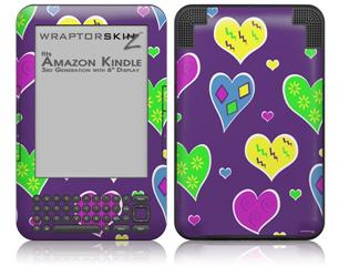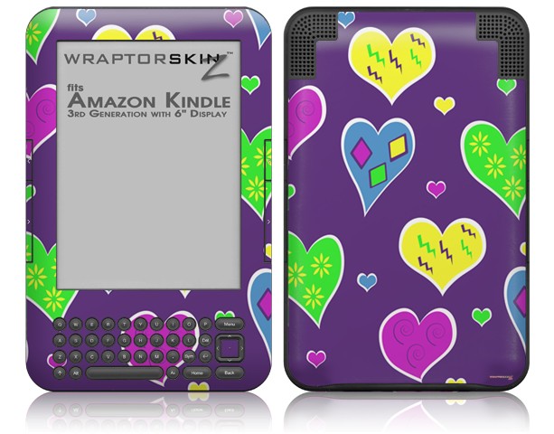 Crazy Hearts - Decal Style Skin fits Amazon Kindle 3 Keyboard (with 6 inch display)