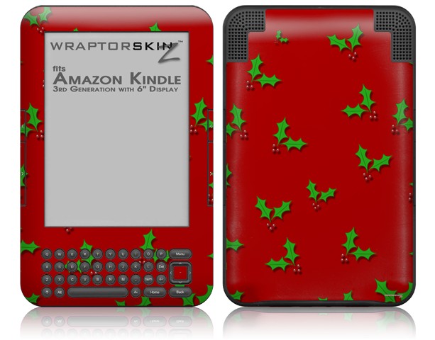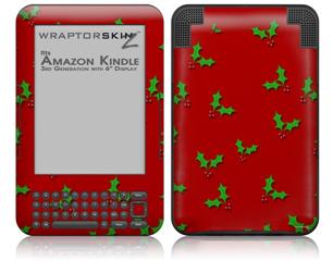 Christmas Holly Leaves on Red - Decal Style Skin fits Amazon Kindle 3 Keyboard (with 6 inch display)