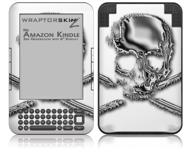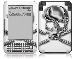 Chrome Skull on White - Decal Style Skin fits Amazon Kindle 3 Keyboard (with 6 inch display)