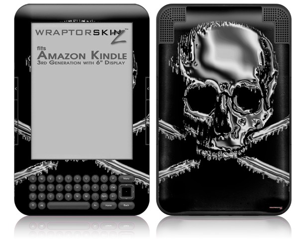 Chrome Skull on Black - Decal Style Skin fits Amazon Kindle 3 Keyboard (with 6 inch display)