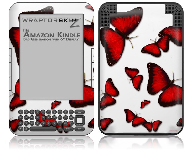 Butterflies Red - Decal Style Skin fits Amazon Kindle 3 Keyboard (with 6 inch display)