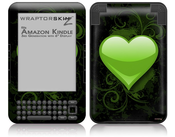 Glass Heart Grunge Green - Decal Style Skin fits Amazon Kindle 3 Keyboard (with 6 inch display)
