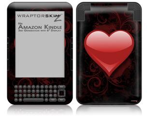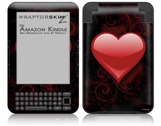 Glass Heart Grunge Red - Decal Style Skin fits Amazon Kindle 3 Keyboard (with 6 inch display)
