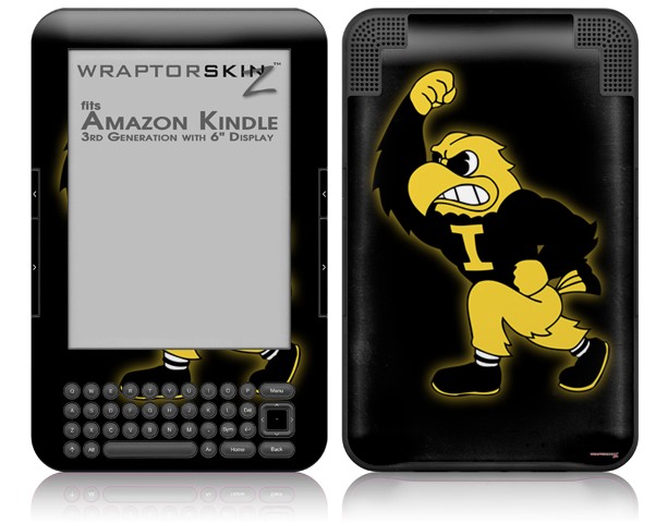Iowa Hawkeyes Herky on Black - Decal Style Skin fits Amazon Kindle 3 Keyboard (with 6 inch display)