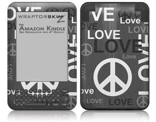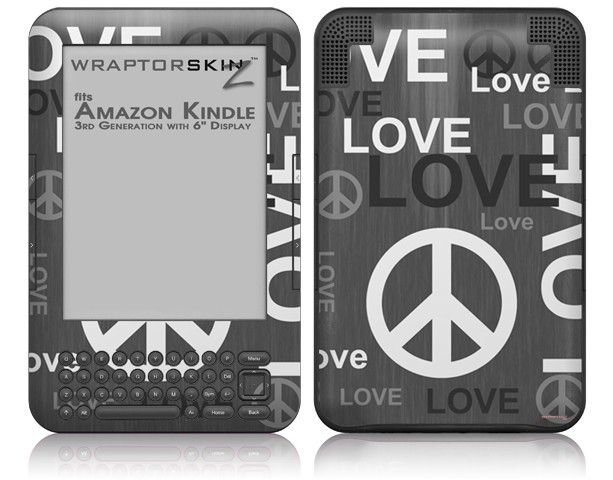 Love and Peace Gray - Decal Style Skin fits Amazon Kindle 3 Keyboard (with 6 inch display)