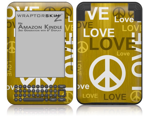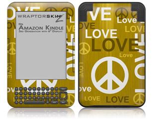 Love and Peace Yellow - Decal Style Skin fits Amazon Kindle 3 Keyboard (with 6 inch display)