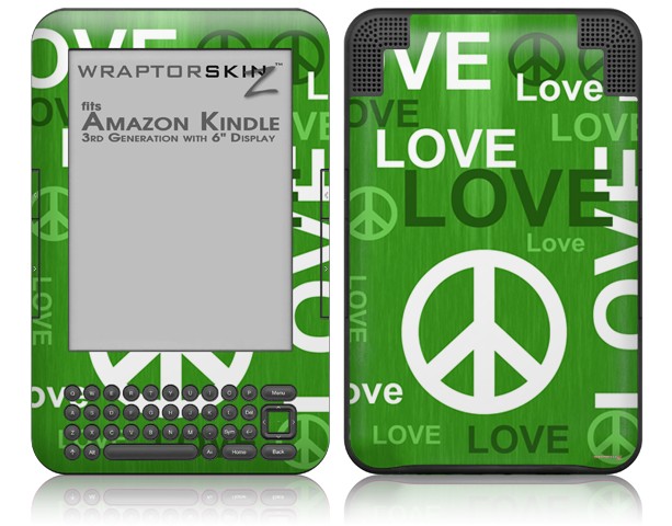 Love and Peace Green - Decal Style Skin fits Amazon Kindle 3 Keyboard (with 6 inch display)