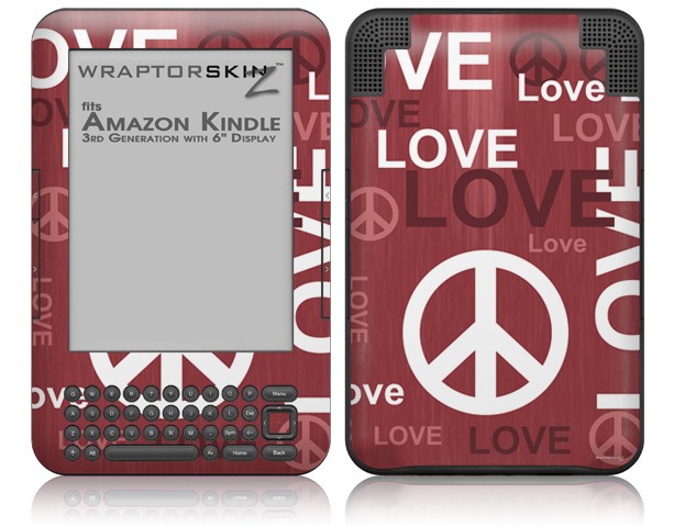 Love and Peace Pink - Decal Style Skin fits Amazon Kindle 3 Keyboard (with 6 inch display)