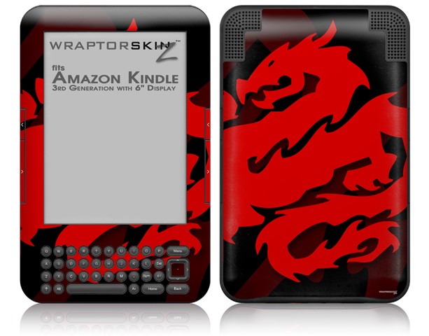 Oriental Dragon Red on Black - Decal Style Skin fits Amazon Kindle 3 Keyboard (with 6 inch display)
