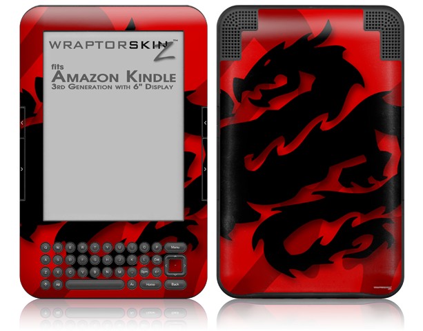 Oriental Dragon Black on Red - Decal Style Skin fits Amazon Kindle 3 Keyboard (with 6 inch display)
