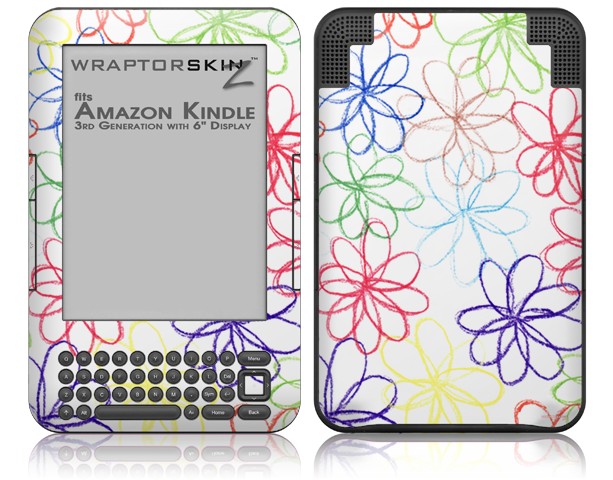 Kearas Flowers on White - Decal Style Skin fits Amazon Kindle 3 Keyboard (with 6 inch display)