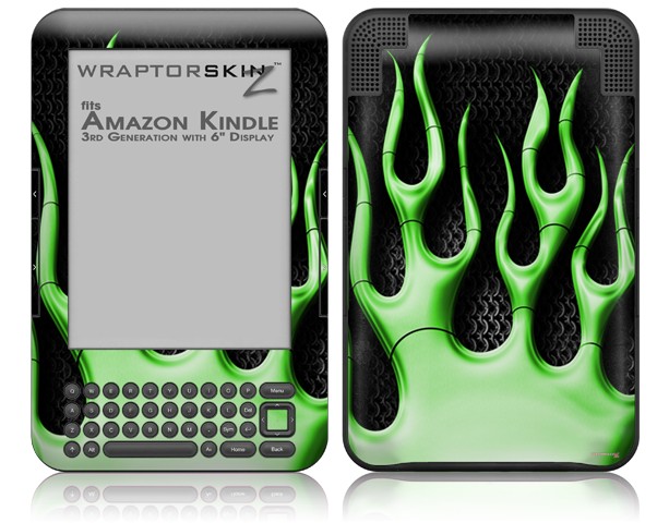 Metal Flames Green - Decal Style Skin fits Amazon Kindle 3 Keyboard (with 6 inch display)