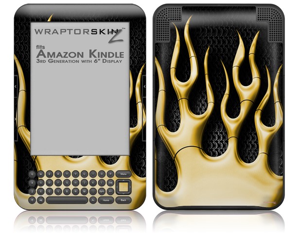 Metal Flames Yellow - Decal Style Skin fits Amazon Kindle 3 Keyboard (with 6 inch display)