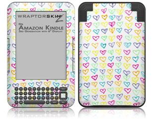 Kearas Hearts White - Decal Style Skin fits Amazon Kindle 3 Keyboard (with 6 inch display)