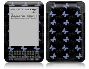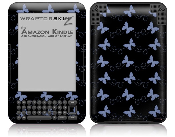 Pastel Butterflies Blue on Black - Decal Style Skin fits Amazon Kindle 3 Keyboard (with 6 inch display)