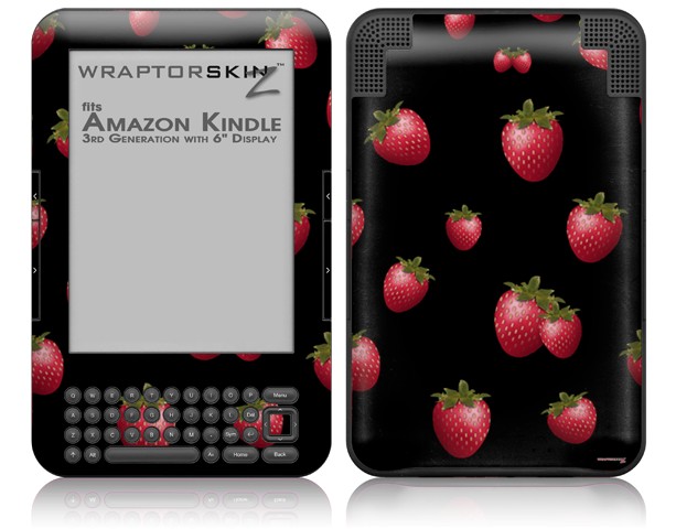 Strawberries on Black - Decal Style Skin fits Amazon Kindle 3 Keyboard (with 6 inch display)