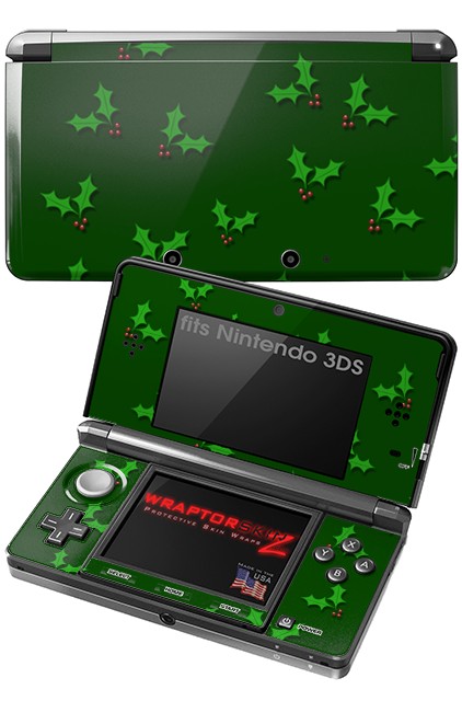 Nintendo 3DS Decal Style Skin - Christmas Holly Leaves on Green