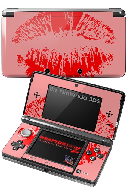 Nintendo 3DS Decal Style Skin - Big Kiss Lips Red on Pink