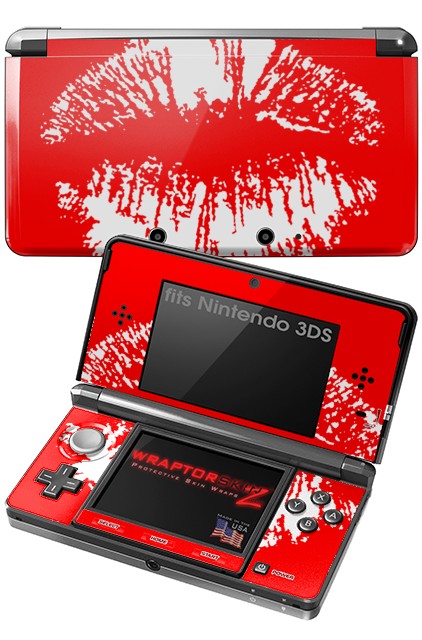 Nintendo 3DS Decal Style Skin - Big Kiss Lips White on Red