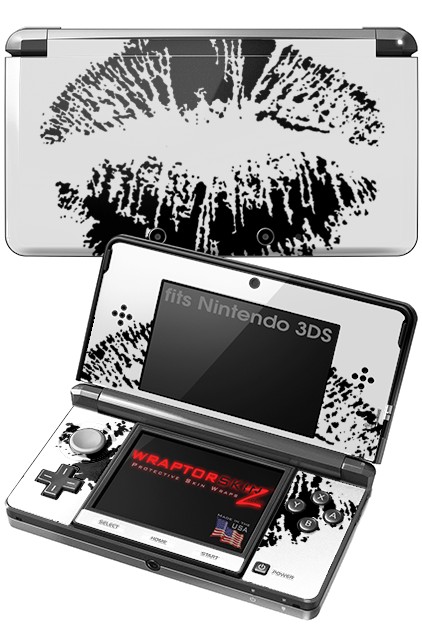 Nintendo 3DS Decal Style Skin - Big Kiss Lips Black on White