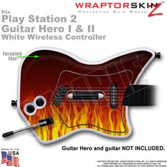 PS2 Guitar Hero I & II White Wireless Fire on Black Skin