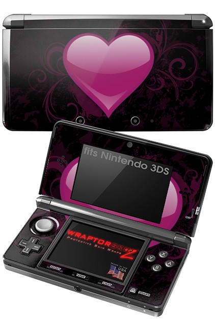 Nintendo 3DS Decal Style Skin - Glass Heart Grunge Hot Pink