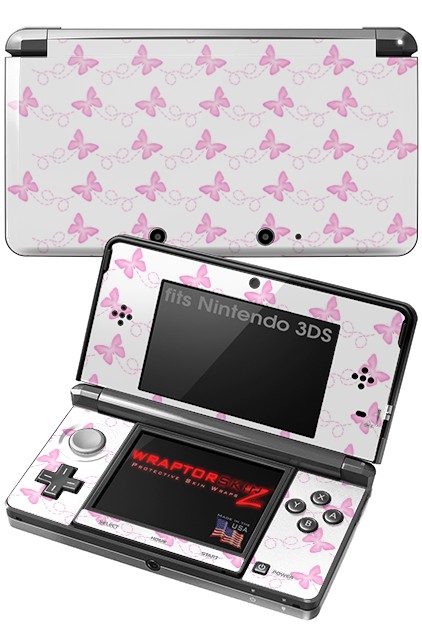 Nintendo 3DS Decal Style Skin - Pastel Butterflies Pink on White