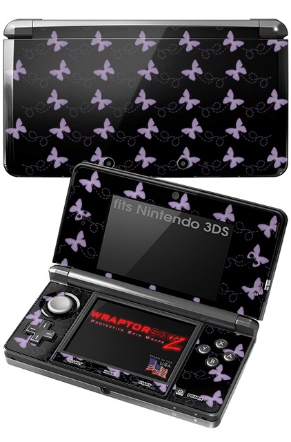 Nintendo 3DS Decal Style Skin - Pastel Butterflies Purple on Black