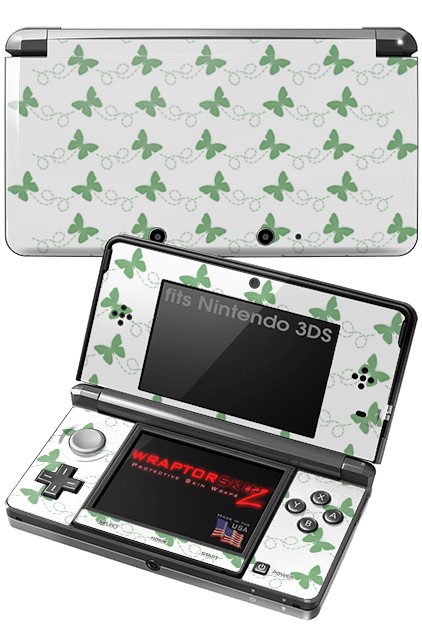 Nintendo 3DS Decal Style Skin - Pastel Butterflies Green on White