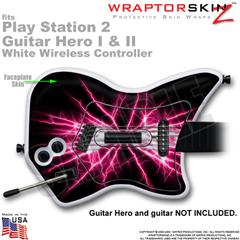 PS2 Guitar Hero I & II White Wireless Lightning Pink Skin