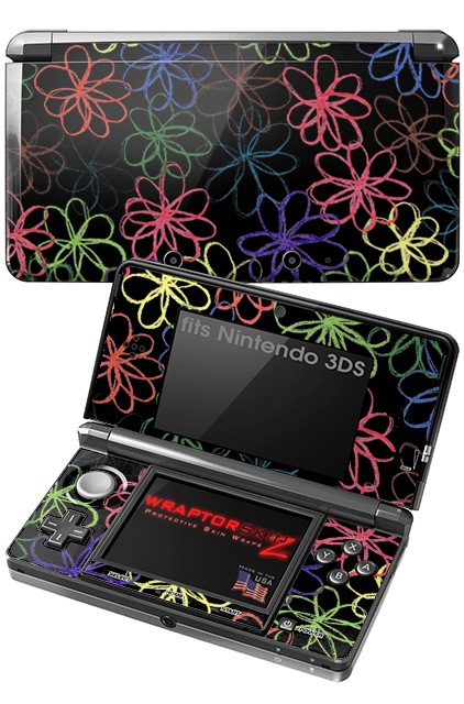 Nintendo 3DS Decal Style Skin - Kearas Flowers on Black