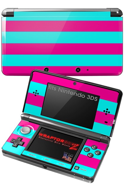 Nintendo 3DS Decal Style Skin - Kearas Psycho Stripes Neon Teal and Hot Pink