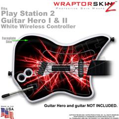 PS2 Guitar Hero I & II White Wireless Lightning Red Skin