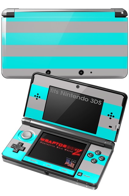 Nintendo 3DS Decal Style Skin - Kearas Psycho Stripes Neon Teal and Gray