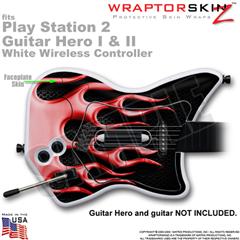 PS2 Guitar Hero I & II White Wireless Metal Flames Red Skin
