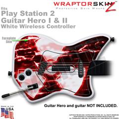 PS2 Guitar Hero I & II White Wireless Radioactive Red Skin