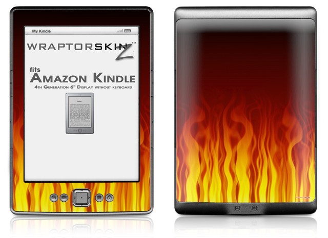 Fire on Black - Decal Style Skin (fits 4th Gen Kindle with 6inch display and no keyboard)