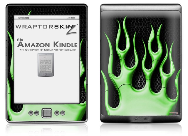 Metal Flames Green - Decal Style Skin (fits 4th Gen Kindle with 6inch display and no keyboard)