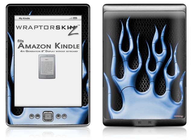 Metal Flames Blue - Decal Style Skin (fits 4th Gen Kindle with 6inch display and no keyboard)