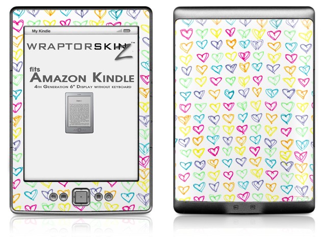 Kearas Hearts White - Decal Style Skin (fits 4th Gen Kindle with 6inch display and no keyboard)