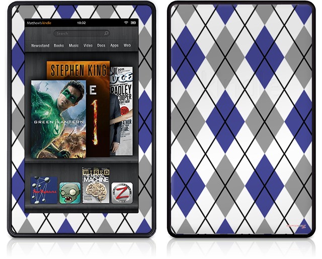 Amazon Kindle Fire (Original) Decal Style Skin - Argyle Blue and Gray
