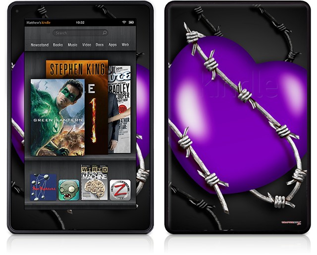 Amazon Kindle Fire (Original) Decal Style Skin - Barbwire Heart Purple