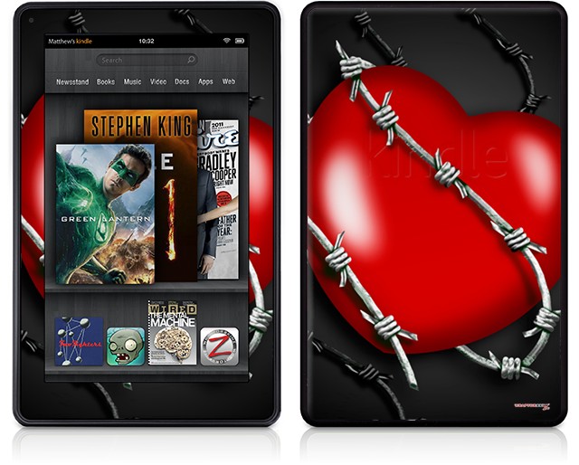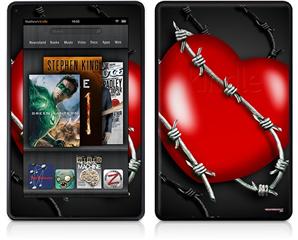 Amazon Kindle Fire (Original) Decal Style Skin - Barbwire Heart Red