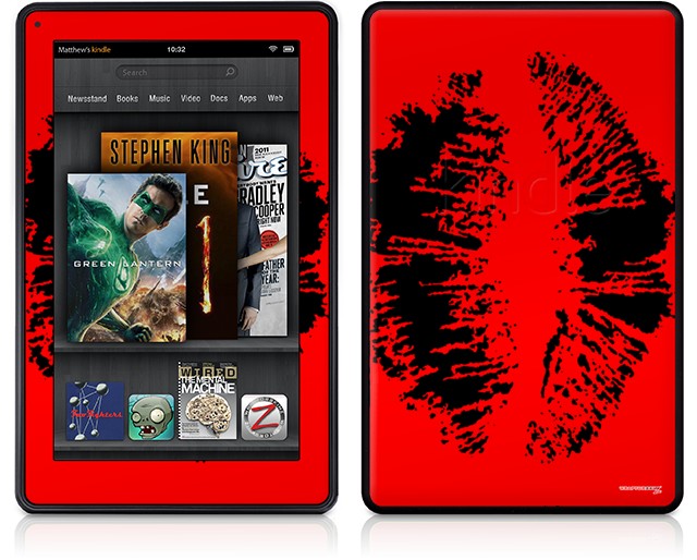 Amazon Kindle Fire (Original) Decal Style Skin - Big Kiss Black on Red
