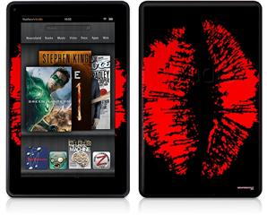 Amazon Kindle Fire (Original) Decal Style Skin - Big Kiss Red Lips on Black