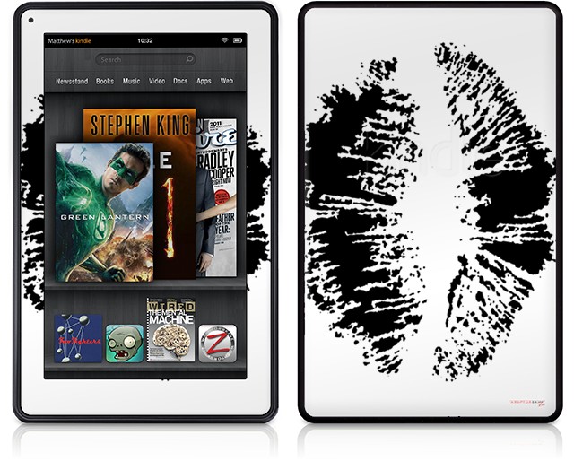 Amazon Kindle Fire (Original) Decal Style Skin - Big Kiss Black on White