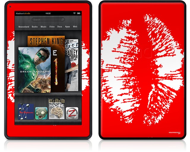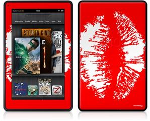 Amazon Kindle Fire (Original) Decal Style Skin - Big Kiss White Lips on Red